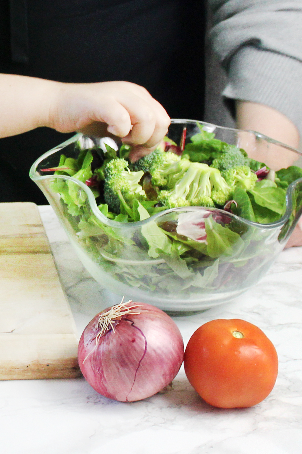 10. Sub out any side with a big, tossed salad. You can toss the whole thing with a healthier homemade dressing made from 1/4 cup red wine vinegar, 2 tablespoons of water, 1/2 cup olive oil, sea salt, and pepper. You can shake in a multitude of herbs and minced garlic for a delicious and flavorful dressing.