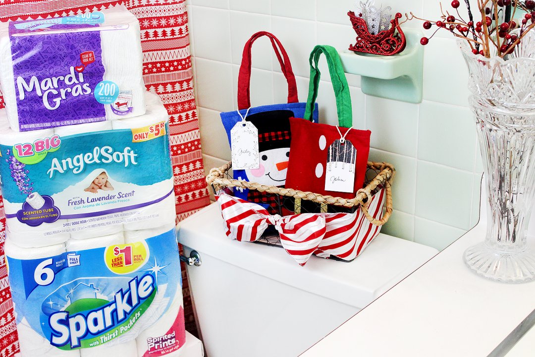 Creative Holiday Bathroom Decor + Overnight Guest Toiletry Bags!